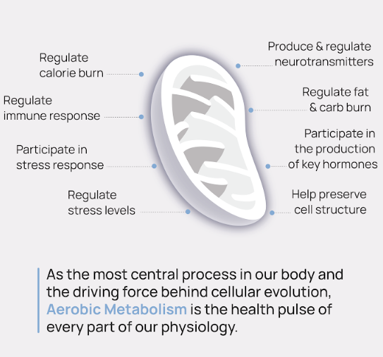 Oxygen, the molecule of life, fuels your metabolism and energizes every cell in your body. It's the driving force behind the "burning" of nutrients like fats, carbs, and proteins to release the energy you need to thrive. Your heart, lungs, and cells work perfectly to ensure optimal oxygen transfer and utilization. Any impairment in these systems directly impacts your Aerobic Health, as recognized by The American Heart Association.